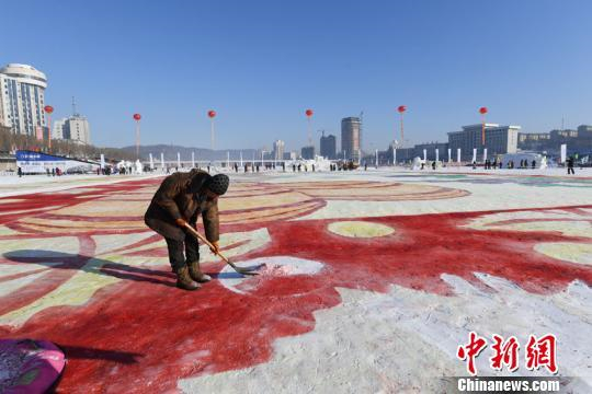 The snow painting measures more than 2,220 square meters in Tonghua city, Northeast China's Jilin province on Jan 20, 2018.
