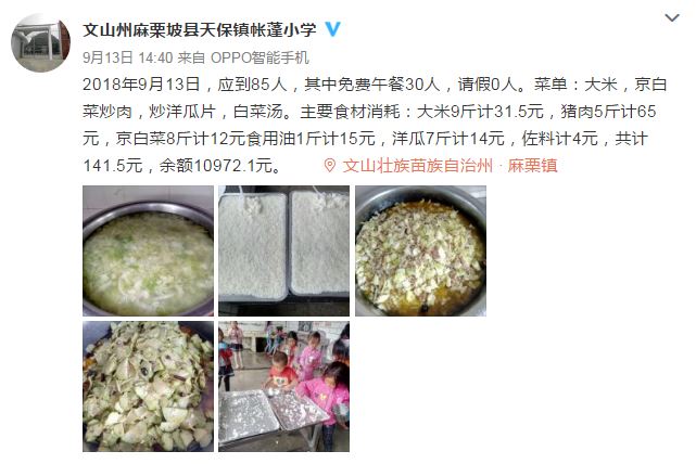 Rural primary schools in three counties posting lunch menus on their Weibo accounts are winning widespread approval among netizens.